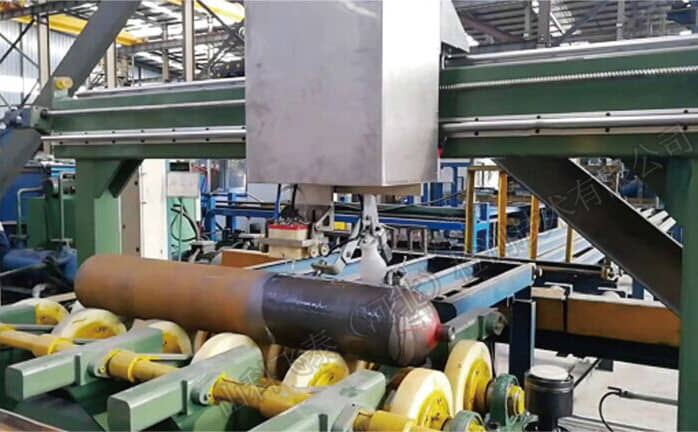 長管拖車用大容積鋼制無縫氣瓶由于長度和體積都較大,如果采用接觸法手工探傷,不僅探傷效率低下,還會因為